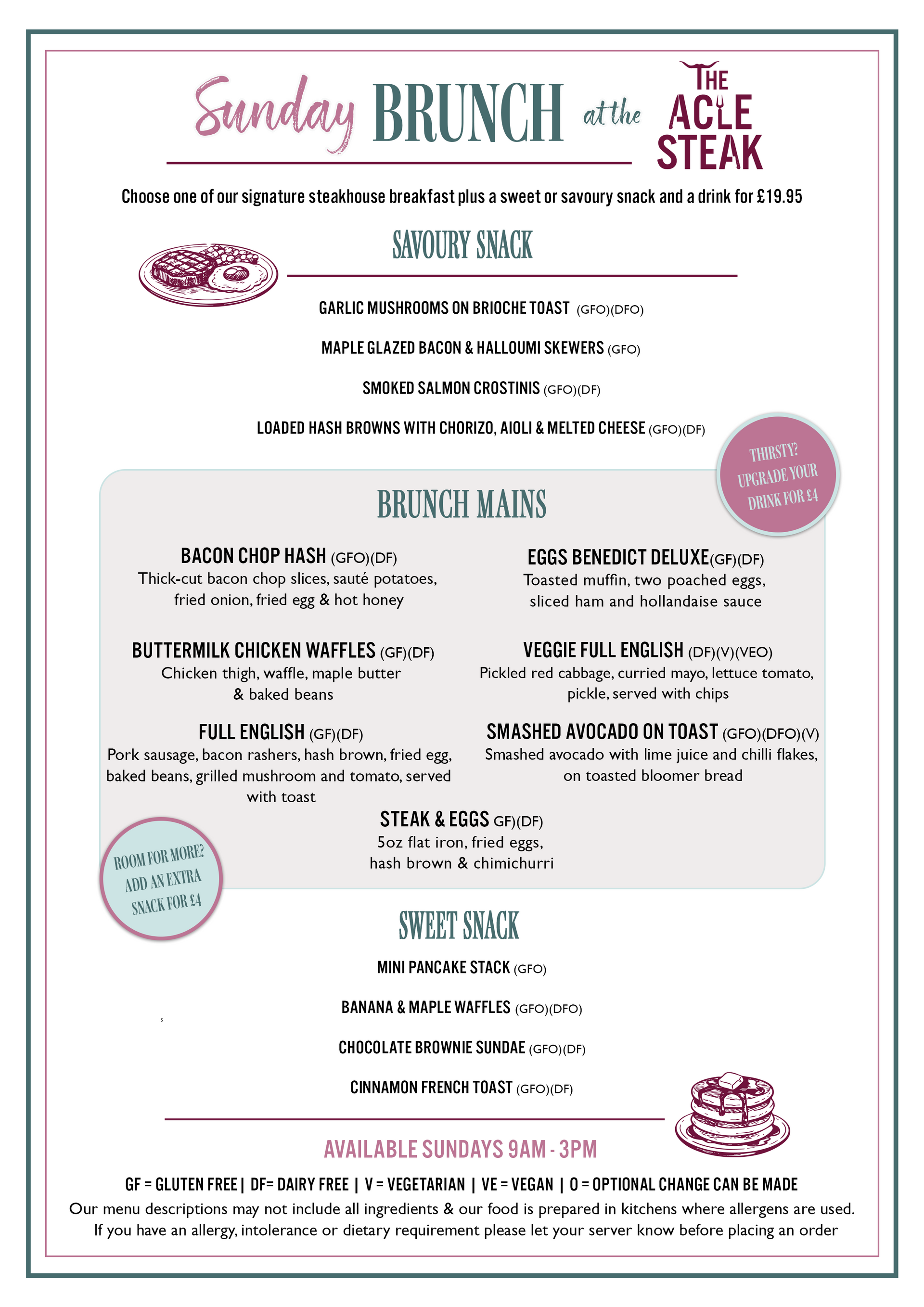 Early riser? Make Sundays something to look forward to and join us for our all-new Sunday Brunch at The Acle Steak.