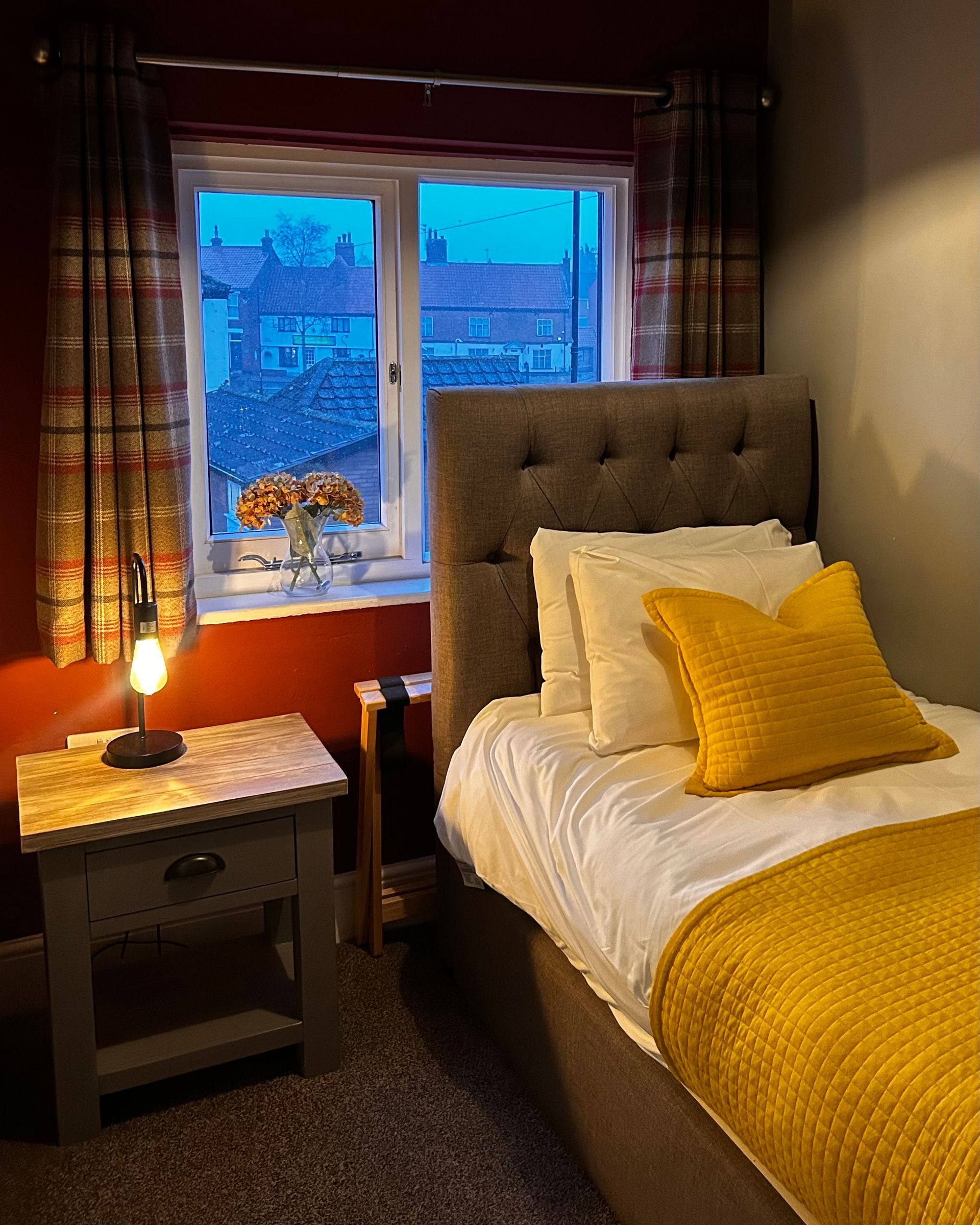 Our twin is perfect for couples, friends, or business travellers. It features comfortable twin beds, a private en-suite with complimentary toiletries, and a Smart TV for evening relaxation. Tastefully furnished and situated above our welcoming pub, the room offers a cosy retreat with easy access to our bar and dining areas, ideal for unwinding after a day exploring Acle and the Norfolk Broads.