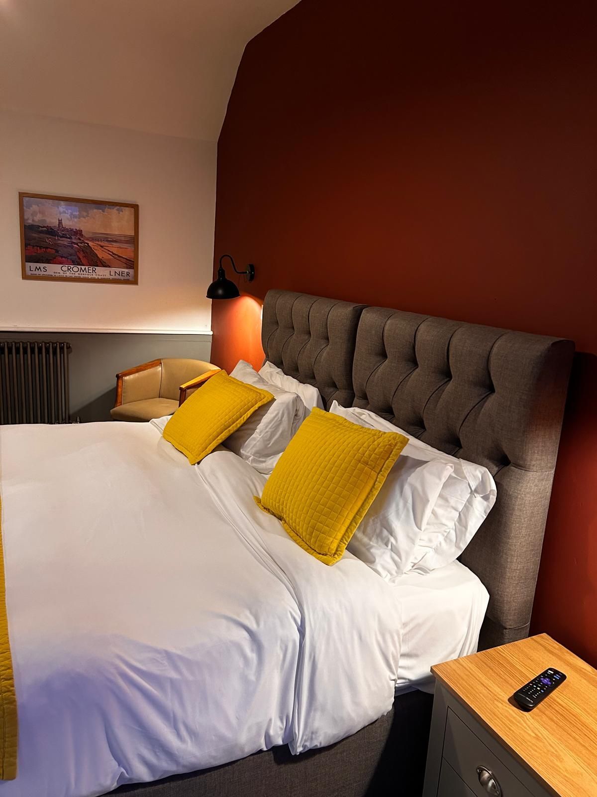 Relax in our Standard Double Room, complete with a comfy double bed, private en-suite, kettle, and Smart TV. Set above our friendly pub, the room provides a cosy haven after a day discovering nearby highlights like the Norfolk Broads. Treat yourself to one of our signature steaks, then head upstairs to relax and recharge.
